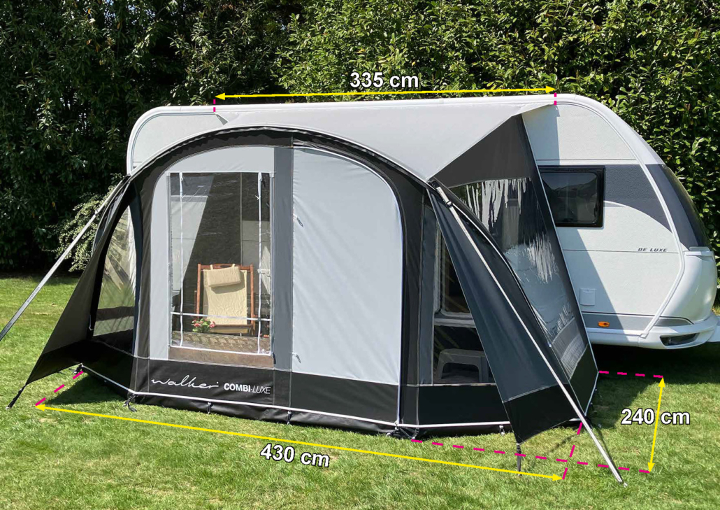 Der er masser af gulvplads – Hele 430 cm i bredde og 240 cm i dybde i midten. Dette gør Walker COMBI-LUXE til en alsidig partner for både rejsecampisten, og dig der bliver lidt længere på samme campingplads.